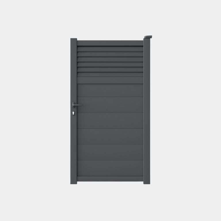 Puerta peatonal Aluminio recta con lamas modelo Arturo. Múltiples colores y opciones disponibles. Disponible en portón abatible y corredero.